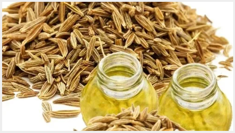 The essential oil of cumin is extracted from its dried and crushed seeds. Nearly all the medicinal properties of cumin come from its essential oils. It is abundant in a phytochemical compound called Cuminaldehyde and exhibits medicinal properties that fight diabetes, epilepsy, tumors and increases immunity.